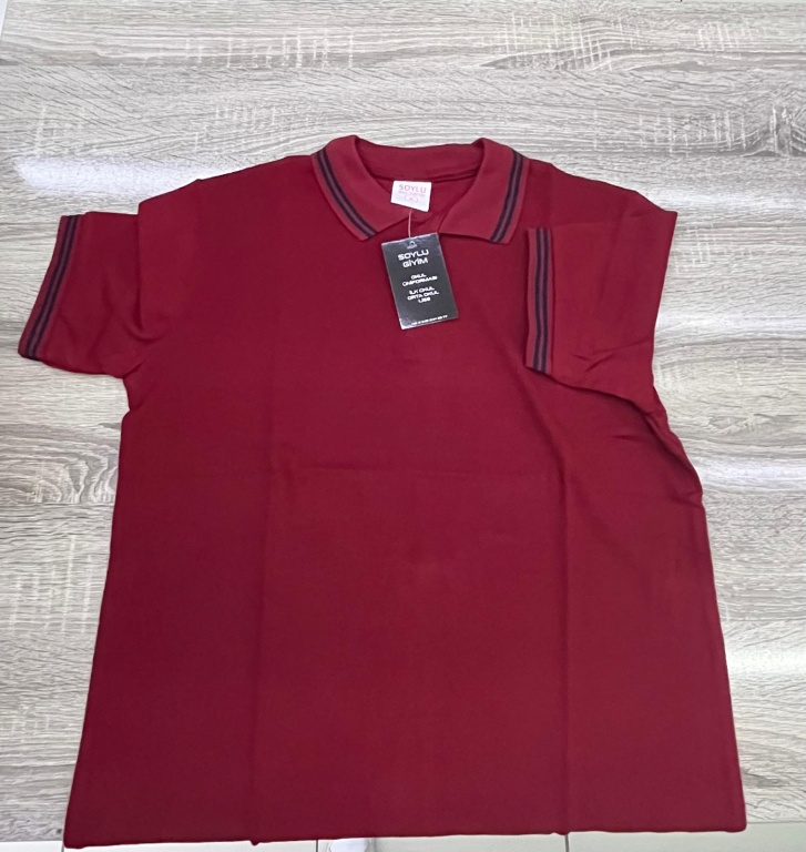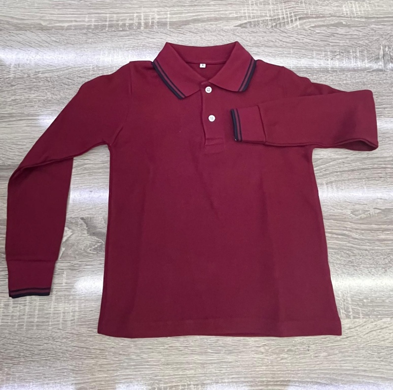 POLO YAKA KISA KOL VE UZUN KOL TSHIRT : Zemin bordo renk. Yaka ve kol ribanaları bordo üzeri çift çizgi lacivert renkte olacaktır.
